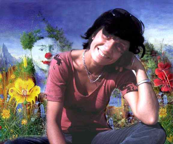 Deddy devant un des tableaux de son mari Andre Martins de Barros.