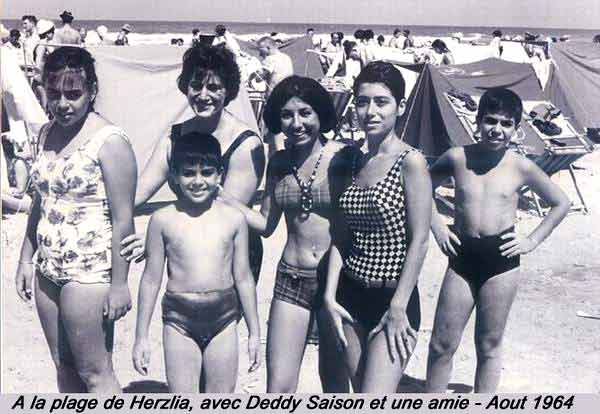 Photo souvenir lors de mon premier voyage en Israel en 1964,…A la plage de Herzlia avec la famille Patan : Aviva, Sami, Mary, et Cesy en l’arriere.