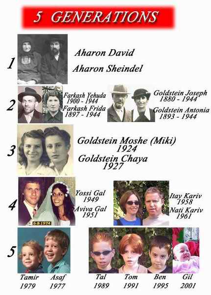 Effectively, till now in 2002, there are five generations, between David & Sheindel Aharon, and Gil Kariv, the youngest member of the family, born in Haifa (Israel) in 2001.