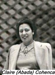 Claire Abada, est nee au Cairo en 1925. Mariee a Edwin Cohenca au Cairo en 1949., et deux ans plustard en 1951, naquit leur fille Mireille. En 1957, a la suite de la guerre de Suez, la famille quitte l’Egypt et emigre pour Israel. Ils sont heberges momentanement a la maabara de Lod, puis , s’etablissent a Holon , ou Claire est morte en 1958.