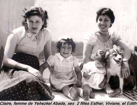 Claire Mekayess, est nee a Tanta , ville Egyptienne au nord du delta du Nil, en 1933. Mariee au Cairo en 1950 a Yehezkel Abada,… 4 enfants sont nes au Cairo, avant leur depart d’Egypt et leur immigration en Israel. en 1957.,… ils s’installent a Haifa ou est ne leur 5 eme enfant. Yehezkel meurt en 1963… Claire habite Naharya.