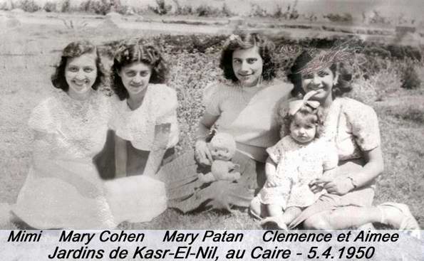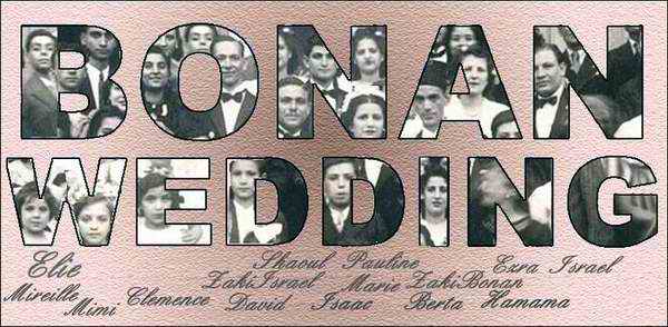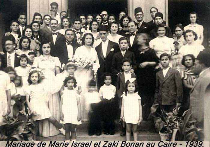 Au mariage de ma soeur Marie avec Zaki Bonan, en 1939,… Mon Dieu, quel monde,… combien de personnes,,,Maman a tourne son visage exactement lors de la prise de vue,… a sa droite c’est Isaac Patan mon cousin, mettant ses mains sur les epaules de David Cohen,… Il y a mes freres Ezra, Isaac, Shaoul, Soussou,… Beaucoup parmis les demoiselles d’honneur etaient des couturieres de l’atelier de couture de la tante Victoria,…On voit Pauline et sa soeur Berta,… Moi, Clemence, je suis au premier plan, une couronne de fleurs sur mes cheuveux, et a ma droite , ma cousine Mimi ecartant ses pieds,… derriere elle un peu vers la gauche, notre cousine Mireille Cohen,..Allah yerhamha,… .Tout en haut a gauche, Elie Patan coince entre tout ce monde… Quel souvenir,…!