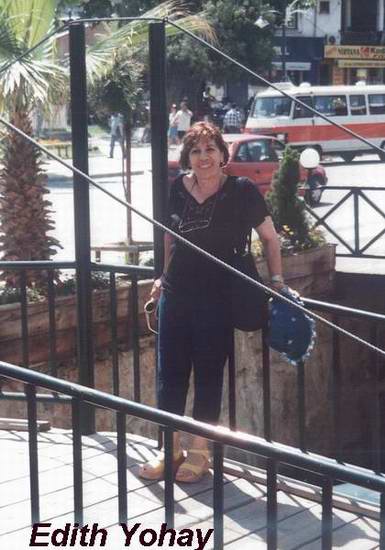 Edith Yohay, nee au Cairo en 1933, et mariee a Yossef Yohay en 1956. En 1957, a la suite de la guerre de Suez, le couple quitte l’Egypt , emigre en Israel, et s’installe a Bne-Brak. Yossef travaille , toujours pharmacien a la “Koupat Holim”, tout pres de sa maison. Ils ont 3 enfants. En 1991, Yossef meurt subitement d’une crise cardiaque. Edith habite toujours le meme appartement.