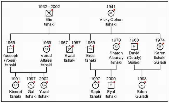 Graphical Genealogical view of the Itshaki Elie & Vicky family descendants.