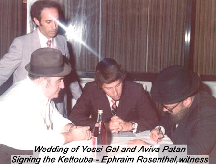 At the wedding of Yossi Gal and Aviva Patan in Tel Aviv, 6 August 1974.On the left, Ephraim Rosenthal witness,
