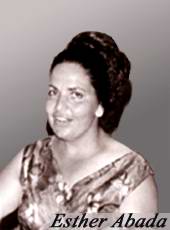 Esther nee a Tripoli (Lybie), en 1934. Mariee a Hayim Abada, le 26 juin 1950, ils habitent a Tirat Hacarmel, pres de Haifa. Ils ont 8 enfants,… 22 petitsfils,… et 6 arriere petitsfils,… Apres la mort de son mari en 1968, Esther demenage et habite a “Karmiel”.