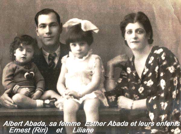 Les racines de la famille Diwane, remontent au Liban, ou est nee Esther. Au debut du 20 eme siecle, la famille emigre vers l’Egypt, s’etablit a Port-Said, ou la famille dirige un hotel. Esther Diwane, se marie avec Albert Abada en 1932. Ils demenagent a Ismailya, au milieu du canal de Suez., et la aussi elle dirige l’hotel familial, tandis qu’Albert travaille dans une usine de saucissons. Ils ont 3 enfants. Gravement malade, Esther succombe et meurt en 1948, a l’age de 39 ans.