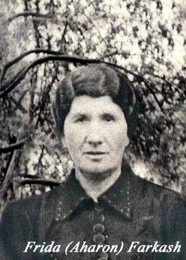 Frida Farkas, lived in the small village of Tyachiv. with her family and some 1500 Jews. At the origin, the village was under the Austro-Hungarian government, …in 1920, it passed to the new Czechoslovakian state. After some years, it was shifted back to Hungary, untill World War 2. As many Jewish villages in the area, it was victim of the Nazi persecution, and their “Final solution”. Jews were gathered in central ghetto in the village. Some were sent to Nazi labor camps, while others were deported to Auschwitz and other extermination camps, between the years 1942-1944. That was also the destiny of the Farkash family, … Some members died in that holocaust, some escaped, some survived, in spite their capture and detention in those camps, … Frida, her husband Yehuda and their 2 younget sons, Kalman and Shimshon did not survive, and died in the Holaucost.
