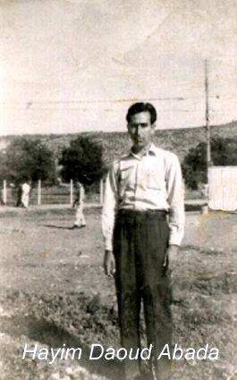 ENGLISH: Hayim Abada is born in Cairo, April 1917. Few details and info are known about his youth,.. He was 6 years old at the death of his father Daoud Abada in 1923. In 1949, aged 32, he emigrated to Israel, alone, and lived in “Tirat Hacarmel”, a small town south of Haifa. On June 26, 1950, married to Esther Attiya, and have 8 children. Later on, in 1957, he brings in Israel, his mother Regina who stayed in Egypt with her daughters. He died in 1968, aged 51 years. FRENCH: Hayim Abada, est ne au Cairo en Avril 1917. Tres peu d’informations sur sa jeunesse en Egypt, sinon qu’il avait 6 ans lors du deces de son pere en 1923. En 1949, a l’age de 32 ans,il emigra en Israel, et s’installe a Tirat Hacarmel, petite ville tout pres de Haifa. Le 26 juin 1950, il se marie avec Esther Attiya, et ont 8 enfants. Plus tard, en 1957, il amene en Israel, sa maman Regina qui etait restee en Egypt, pres de ses filles. Il est mort en 1968, a l’age de 51 ans, et enterre a Tirat Hacarmel. Hebrew: