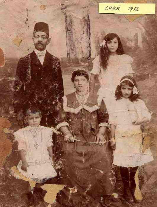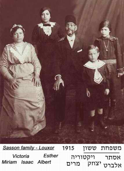 This old photo of the Sasson family, in Luxor in 1912. The parents, with childs Victoria, Esther and Albert.