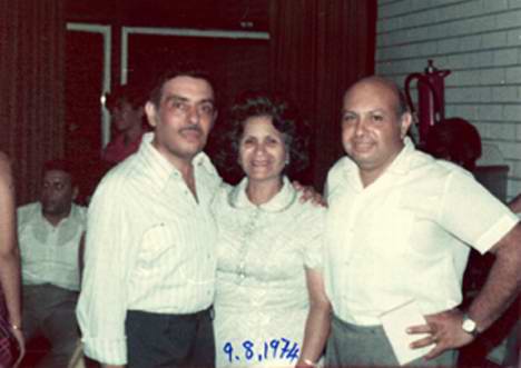 Marie Bonan , with her cousins Elie and Isaac Patan, during the wedding of Aviva Patan, daughter of Elie,…Tel Aviv August 1974