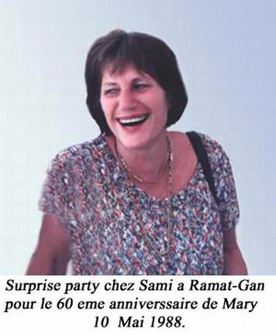 Picture shot date in May 1988. This photo was taken during a surprise party, organized secretely, by the 3 children,.. Aviva, Ezra, and Sami . Family and friends were invited for the 60 th , Mary’s birthday.