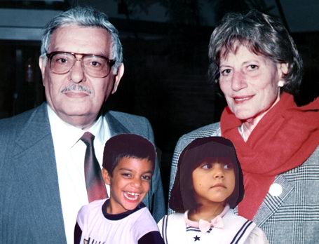 Photo montage.La photo originale de Mary et Elie a ete prise en Fevrier 1989, au mariage de Rina Abada, la fille de Joseph.Plustard, les visages des petis Omri et Mary , ont ete ajoutes.