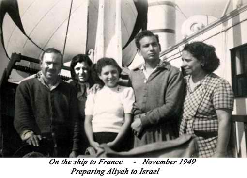 On the ship, with my family, my sister Fortuna and her daughter Jouja,…En route for Israel … November 1949.