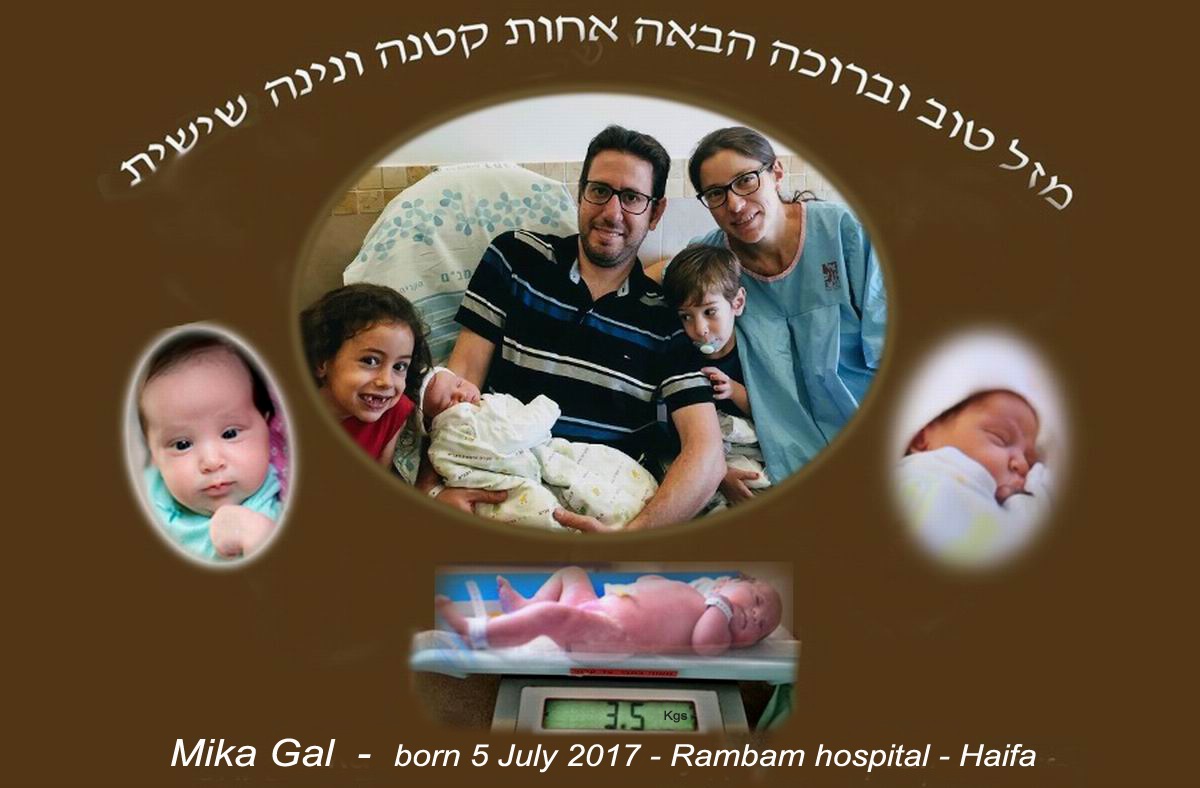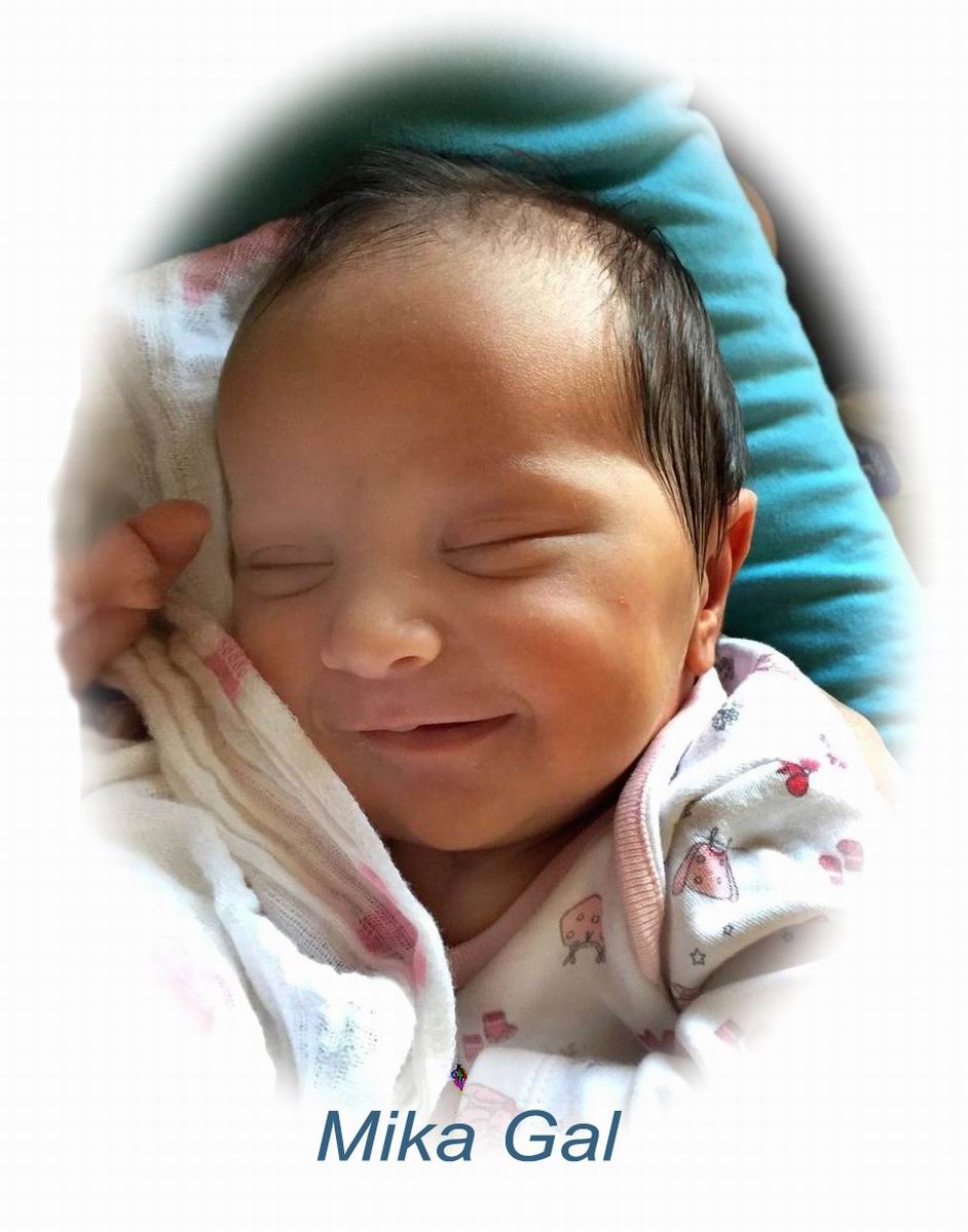 Mika Gal Birth date - Wednesday 5 July 2017 Birth time - 14.00 hour P.M. Birth place - Rambam Hospital Birth town - Haifa (Israel) Weight - 3.5 kgs