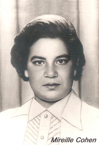 Born in Cairo (Egypt), 25 July 1936. In December 1949, the family emigrated to Israel where they lived in a new agricultural settlement called “Beit Zait”, It is a splendid place , in the heart of the beautiful mountains surrounding Jerusalem. Some years later, Mireille Cohen died after a long and painful sickness, aged 19.