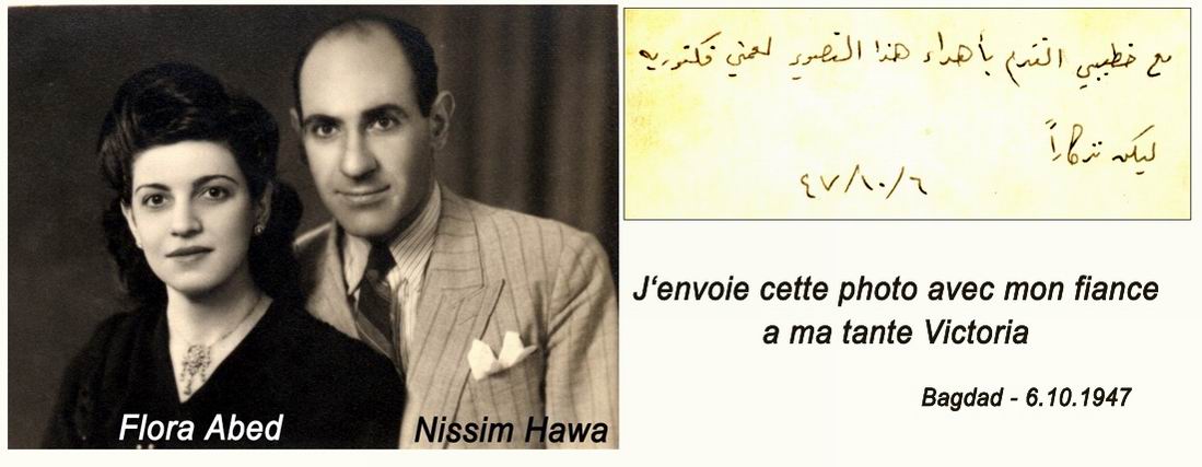 Baghdad, 6 october 1947.Flora Abed and Nissim Hava.