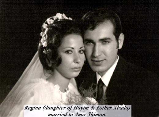 Regina (Abada) Shimon is born in Haifa. Israel on 7 May 1951 Married to Shimon Amir, in Bat Galim, Haifa, Israel - date:16-11-1970