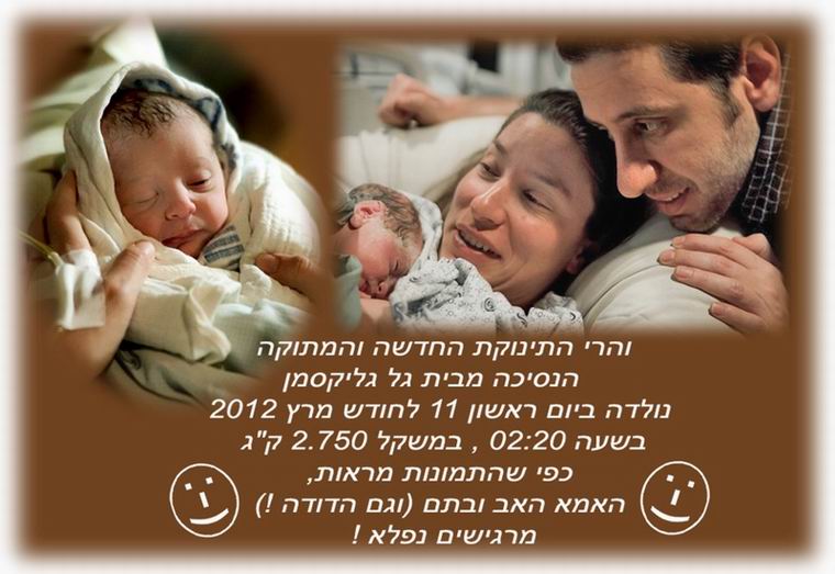 Enjoy,… Shaked is born ,…At last, after 9 months in captivity, I am here.