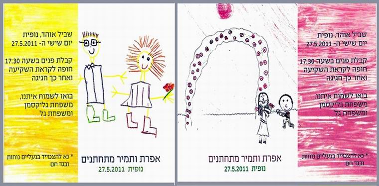 The wedding invitations,…executed by the family kids,…