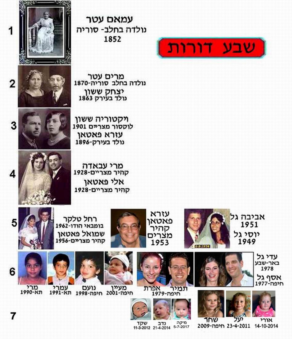 FIVE GENERATIONS FROM MY FATHER’S SIDE.Effectively, till now in 2002, there are five generations, between David & Sheindel Aharon, and my cousin , Gil Kariv, the youngest member of the family, born in Haifa (Israel) in 2001.