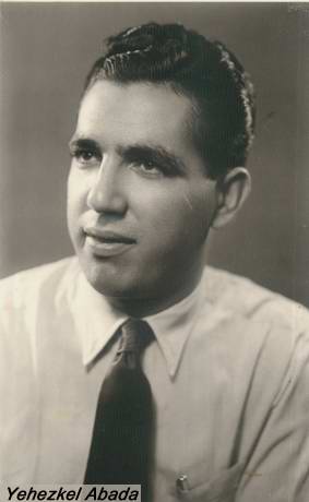 Yehezkel (Ernest) Abada, est ne au Cairo en 1927. Marie au Cairo avec Claire Mekayess en 1950, … Il travaillait a Fayed, dans la zone du canal de Suez,… L’armee anglaise y avait une quantite innombrable d’entrepots , ou elle emmagasinait tout ce dont elle avait besoin pendant la 2 eme guerre mondiale 1919-1945. Elle avait grandement besoin de main d’oeuvre civile , locale , pour gerer tout ce complexe, avant sa liquidation definitive . Apres la guerre de Suez, ils emigrent vers Israel en 1957, avec leurs 4 enfants nes au Cairo, et s’installent a Haifa ou est ne leur 5 eme enfant. Yehezkel meurt en 1963.
