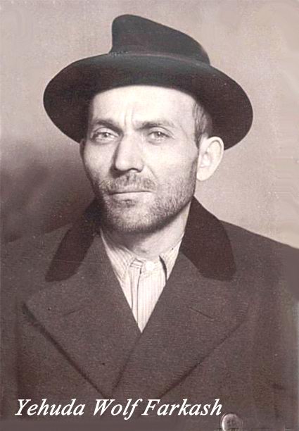 Yehuda Wolf Farkas, known as Farkas Farkas, born in Mervesive Near Tyachiv. His Mother died when he was a child and was sent to Tyachiv to be shoemaker apprentice of David Aharon. At age 18 he was married to David’s daughter, Frida. At the origin, the village was under the Austro-Hungarian government untill the end of WW1 and then became part of the new Czechoslovakian state. After some years, it was shifted back to Hungary, untill World War 2. As many Jewish villages in the area, it was victim of the Nazi persecution, and their “Final solution”. Jews were gathered in central ghetto in the village. Some were sent to Nazi labor camps, while others were deported to Auschwitz and other extermination camps, between the years 1942-1944. That was also the destiny of the Farkash family, Some members died in that holocaust, some escaped, some survived, in spite their capture and detention in those camps, … Yehuda, his wife Frida and their 2 younget sons, Kalman and Shimshon did not survive, and died in the Holaucost., but the 4 daughters survived. Personal comments : Yehuda’s nick name in Hungarian was Farkash, which means “wolf”. So he was known as ” Farkash Farkash” , meaning “Wolf Farkash”. When he was a young boy,and after his father’s death, he was sent to David Aharon as a trainee to become a shoemaker. He lived with the Aharon family, met Frida, … fell in love, and asked his master David, to marry her, although she was older than him. At the beginning of his carreer,he was a shoemaker,… and so , another nickname was attached to him. “Farkash Shouster”, meaning Farkash the shoemaker. This nickname remained, in spite that afterwards he changed his profession, and became a leather trader.