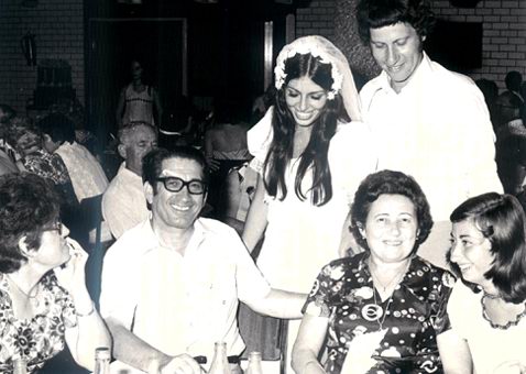 At the wedding of Yossi Gal and Aviva Patan in Tel Aviv, 6 August 1974.In the center , Zvi .